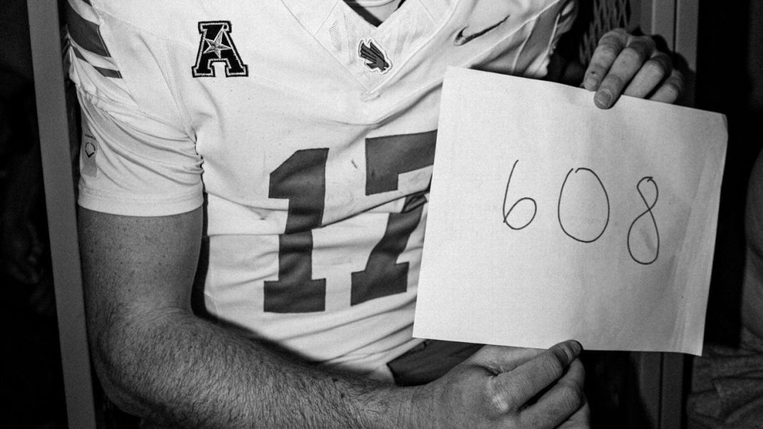 North Texas quarterback Drew Mestemaker lit up the scoreboard on Friday night in his squad’s 54-20 win over Charlotte. Mestemaker completed 37 of his 49 passing attempts, racking up four touchdowns… and a staggering 608 yards